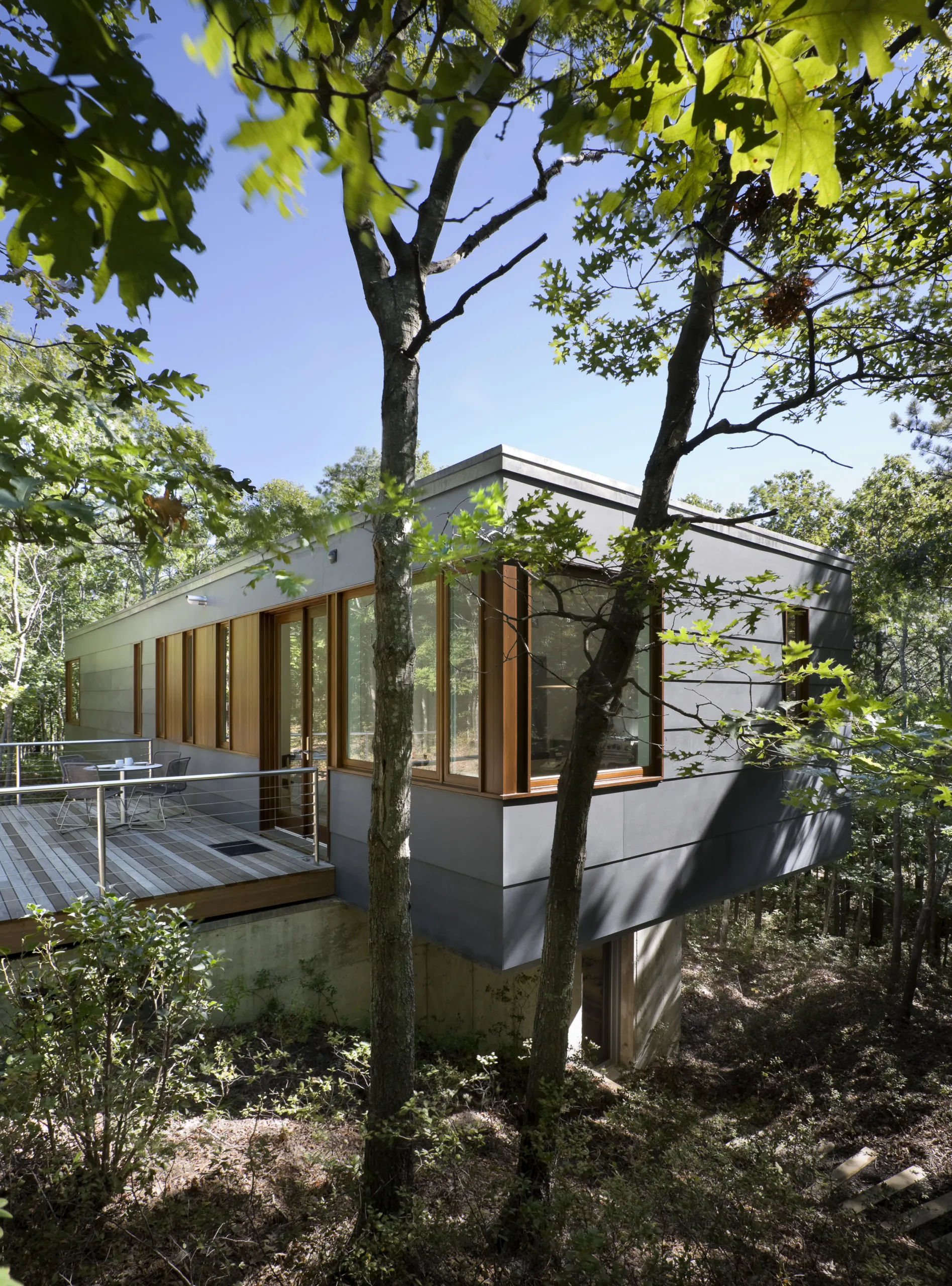 The Floating House. A cantilevered house impossibly leaping from the hillside, hovering among the treetops. Acquired by Infinite Studio, 2025. Currently in development. An evolving work. A study in calibrated, engineered tension. Mass and void in deliberate balance with nature.